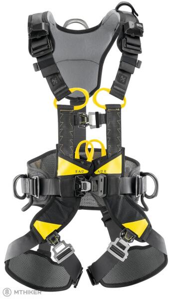 • A speciális LADDER CLIMB mellkasi csatlakozási pont alacsonyabb pozícióban, a derékhoz közelebb helyezkedik el, és bármilyen felhasználáshoz alkalmazkodik: mászáshoz, pozicionáláshoz és alkalmankénti felfüggesztéshez. Lehetőséget kínál arra, hogy egy zuhanásgátlóval, repülésgátlóval vagy egy zuhanásgátló riderrel csatlakoztasson egy fix védővonalon. Esés esetén a rögzítési pont automatikusan felfelé mozdul a mellkason, hogy biztosítsa a test függőleges helyzetét esés után